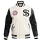 Chicago White Sox Cream and Black World is a standout varsity-style jacket that blends classic MLB heritage with a refined cream-and-black color palette. Designed for fans who appreciate timeless sports fashion, this jacket delivers a clean yet bold look that reflects the legacy of the Chicago White Sox. The neutral cream base paired with contrasting black details creates a versatile design that works effortlessly for casual wear, game days, and street-style outfits.